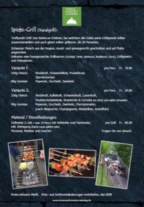 - jeder Gast wählt seine bevorzugten Grilladen selber. Bei Fleischliebhabern und Vegetrariern beliebt